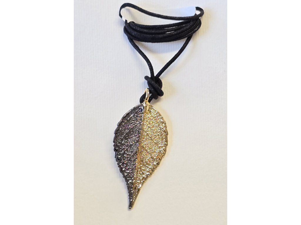 Pozlacený přívěsek s listem třešně - galvanicky pokovené skutečné listy - v dárkovém balení s italským popisem.