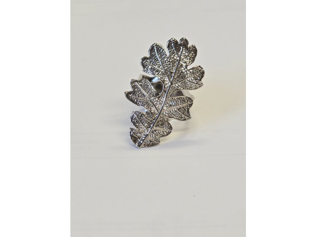 Pozlacený prsten s listem dubu - galvanicky pokovené skutečné listy - v dárkové krabičce s italským a anglickým popisem.