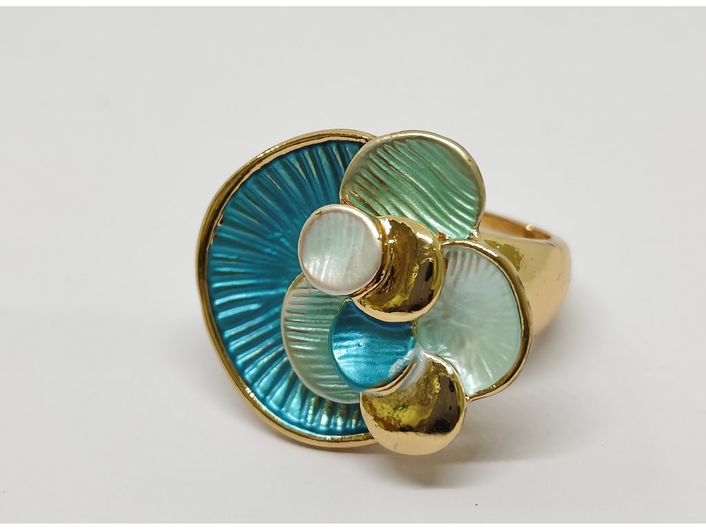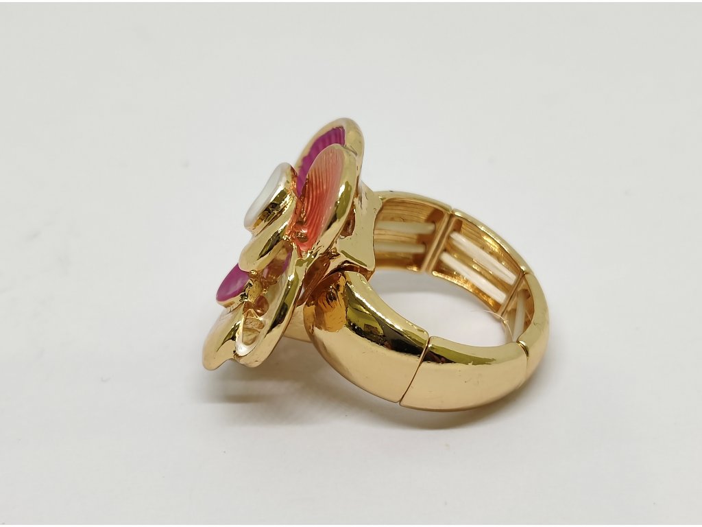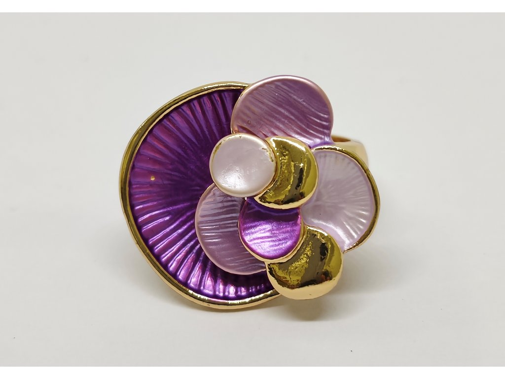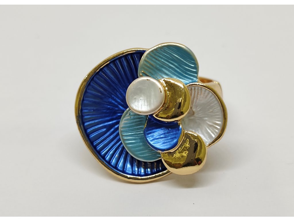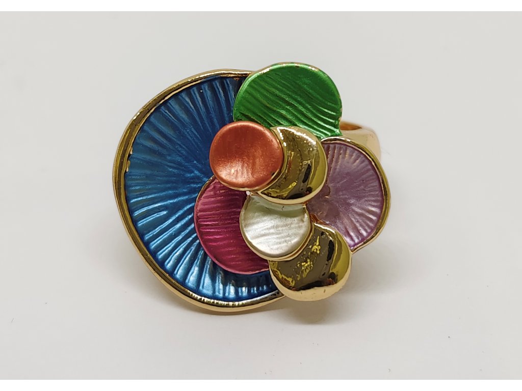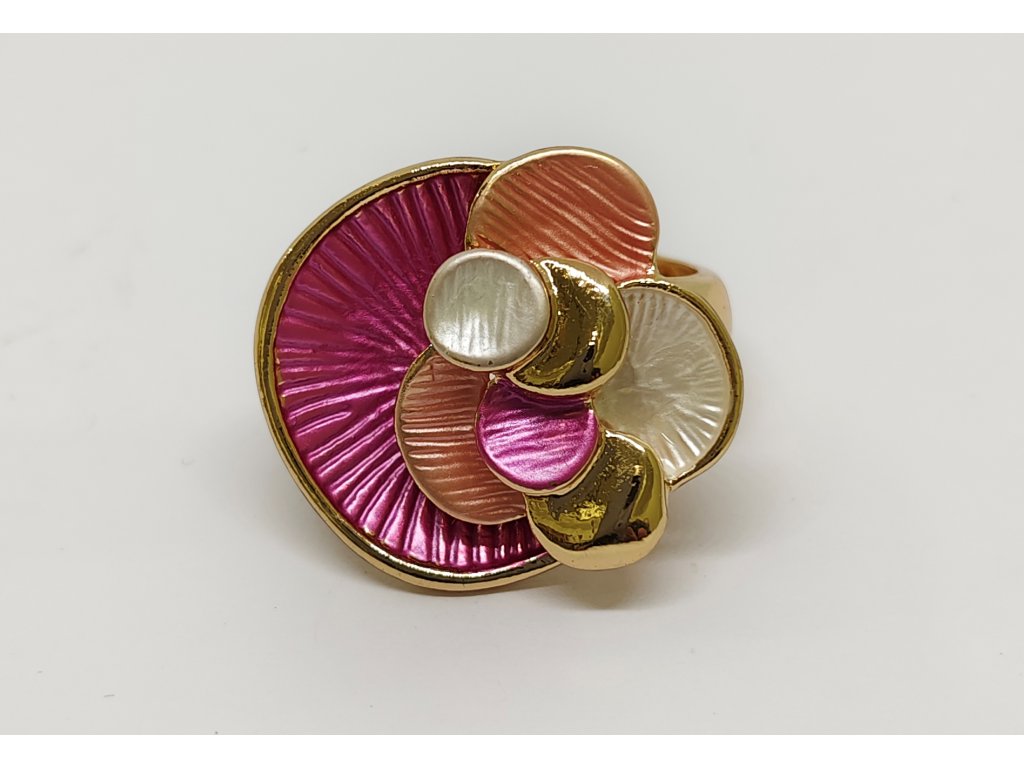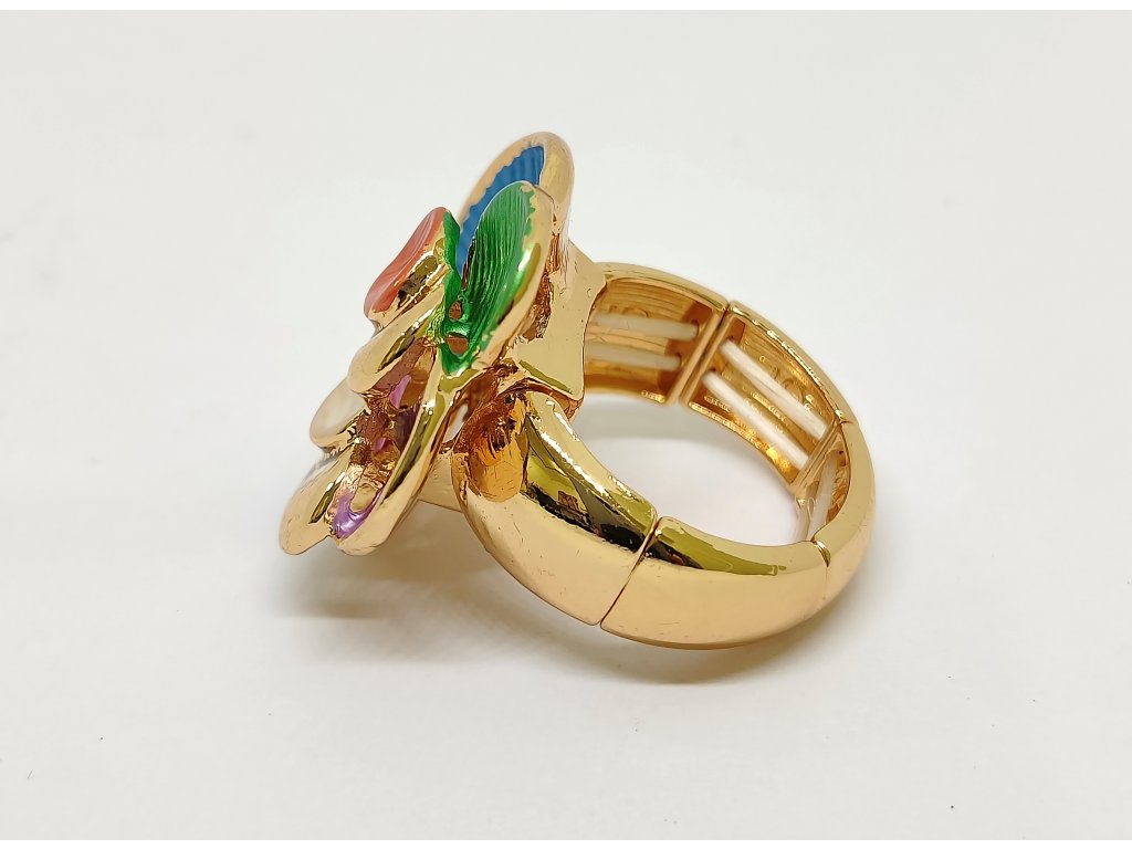 Tento elegantní prsten je vyrobený z lehkého bižuterního kovu a zdobený unikátním smaltovým pokovením a umělými kameny.