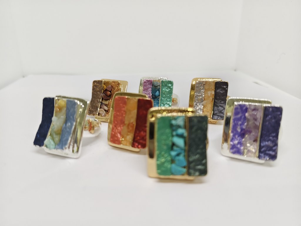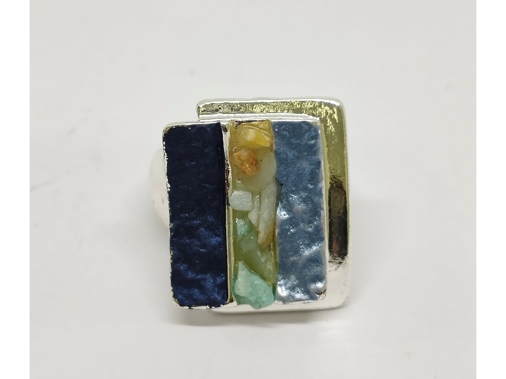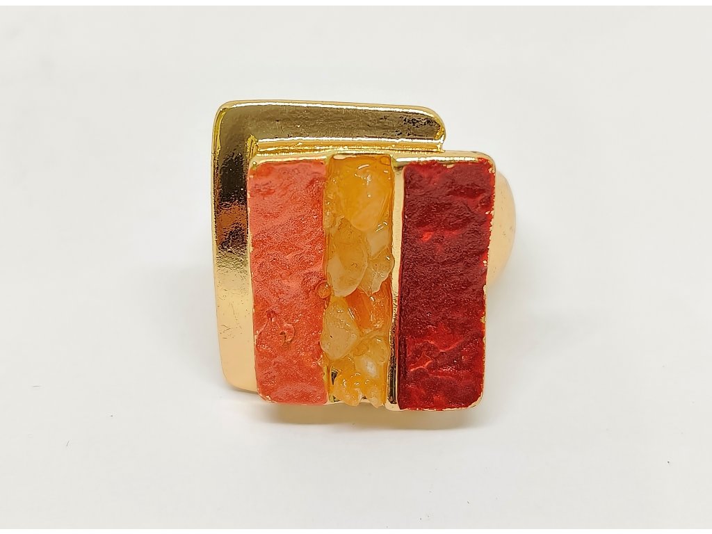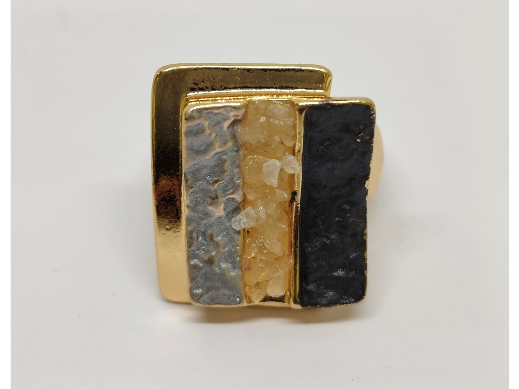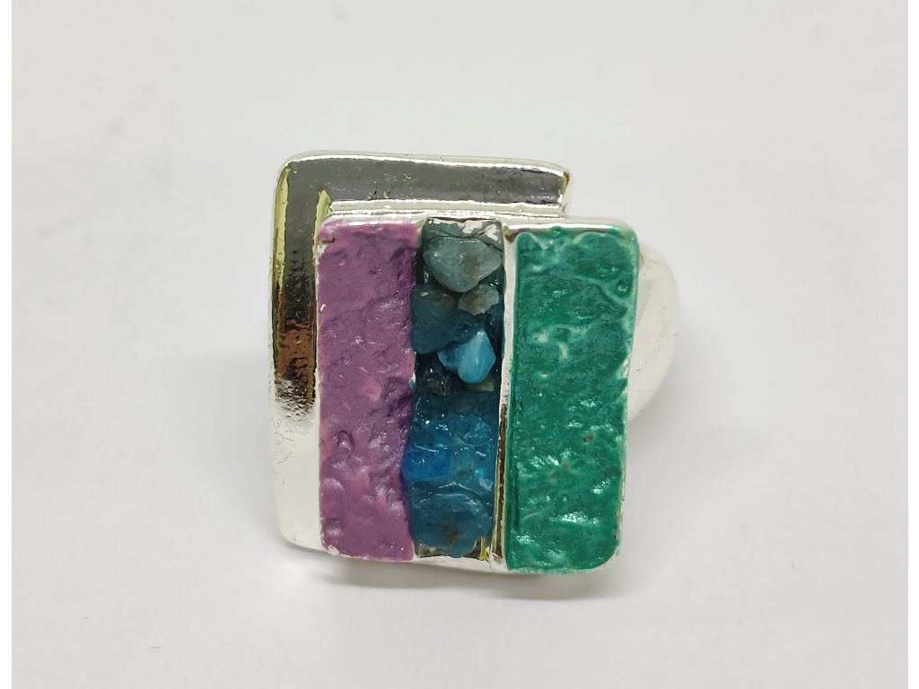 Tento elegantní prsten je vyrobený z lehkého bižuterního kovu a zdobený unikátním smaltovým pokovením a umělými kameny.
