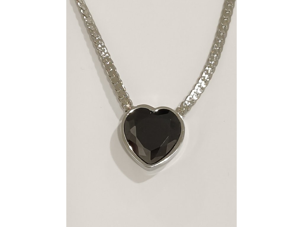 Ocelový řetízek s přívěskem v podobě černého srdce.