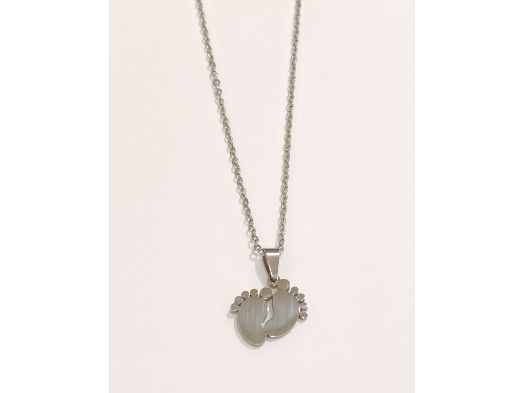 Ocelový řetízek s přívěskem v podobě dětských nožiček.