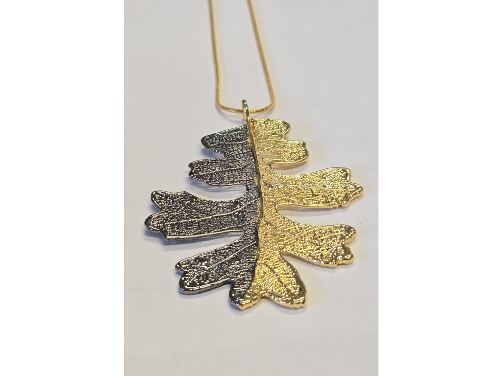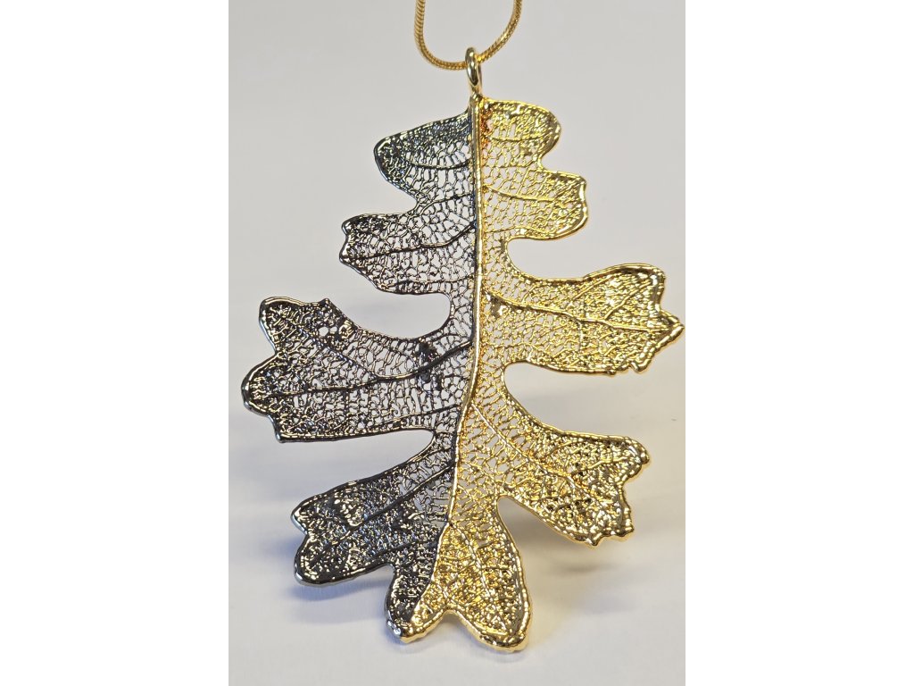 Pozlacený přívěsek s listem dubu - galvanicky pokovené skutečné listy - v dárkovém balení s italským popisem.