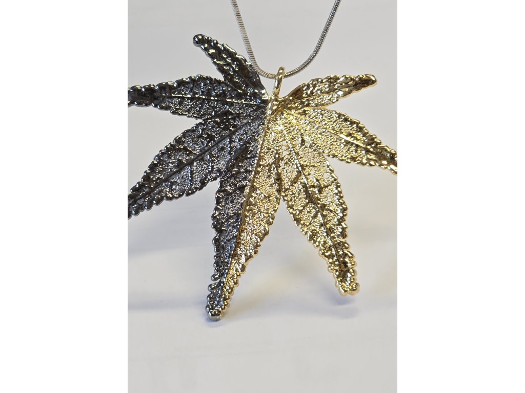Pozlacený řetízek s listem japonského javoru - galvanicky pokovené skutečné listy - v dárkovém balení s italským popisem.