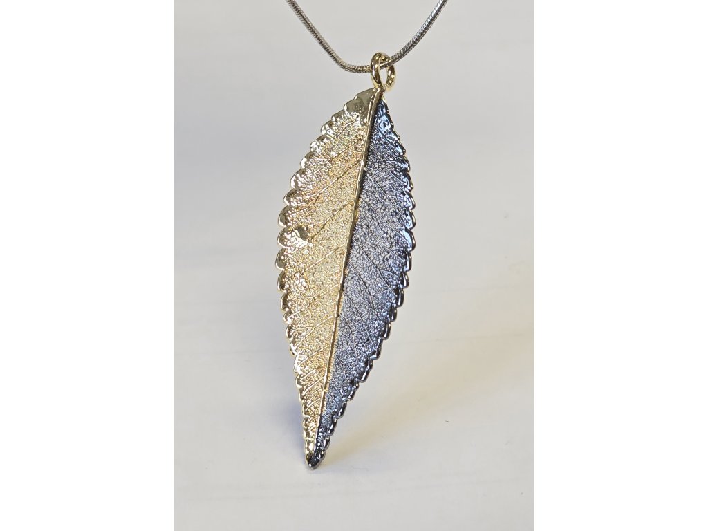 Řetízek (palladium) s listem jilmu - galvanicky pokovené skutečné listy - v dárkovém balení s italským popisem.