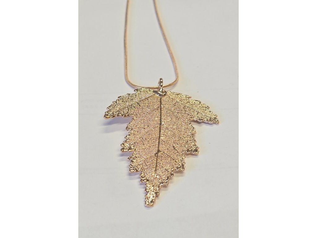 Řetízek (růžové zlato) s listem moruše - galvanicky pokovené skutečné listy - v dárkovém balení s italským popisem.