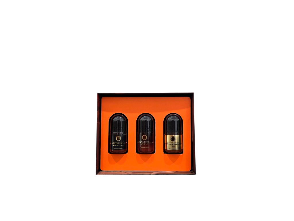 Dárkový set třech luxusních roll-on antiperspirantů. Vůně šafránu, dubu, nebo oudu vynikají svou jemností, sofistikovaností a smyslností. Tyto vůně ladí s dalšími produkty Benjamin Barber, jako jsou oleje na vousy, tekutá mýdla, krémy na ruce, nebo parfémy. Výborně dotváří ucelenou péči o moderního gentlemana a zajistí Vám velmi pozitivní ohlasy v každé společnosti.