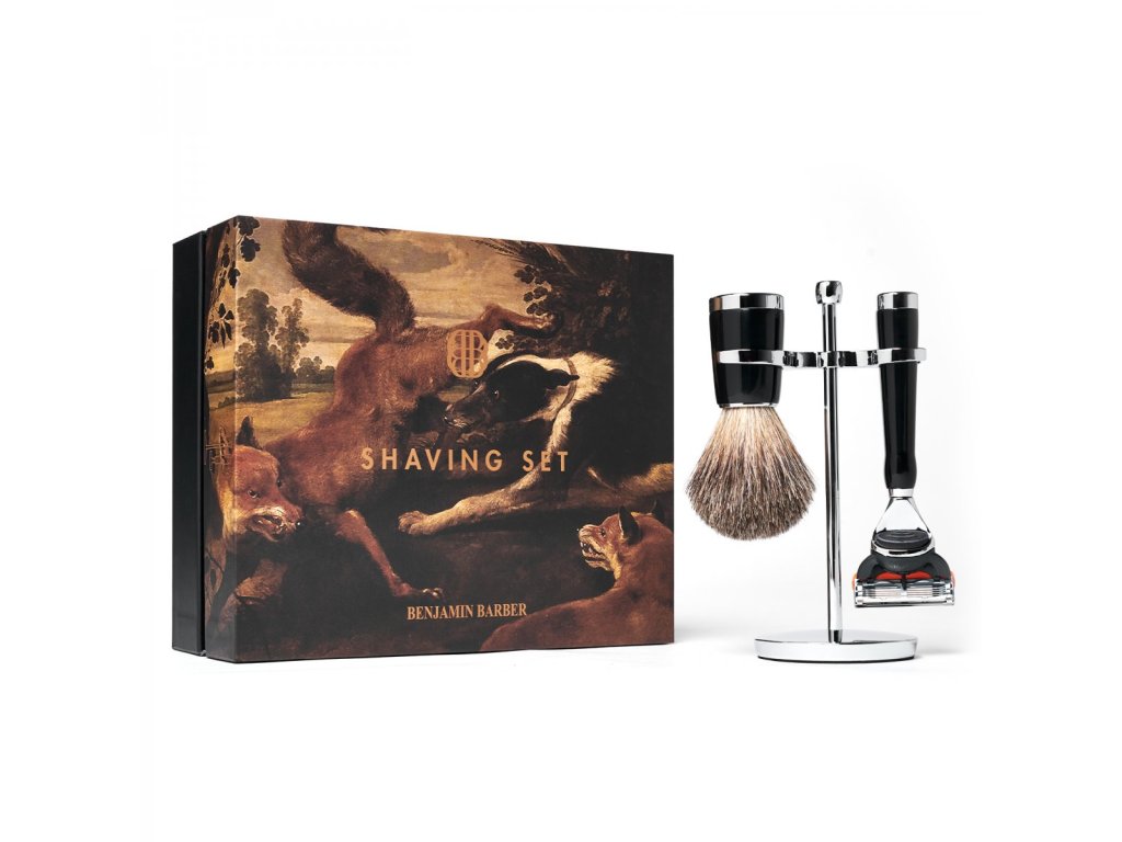 Luxusní holicí set značky Benjamin Barber v provedení Ebony s žiletkou Gillette Fusion.