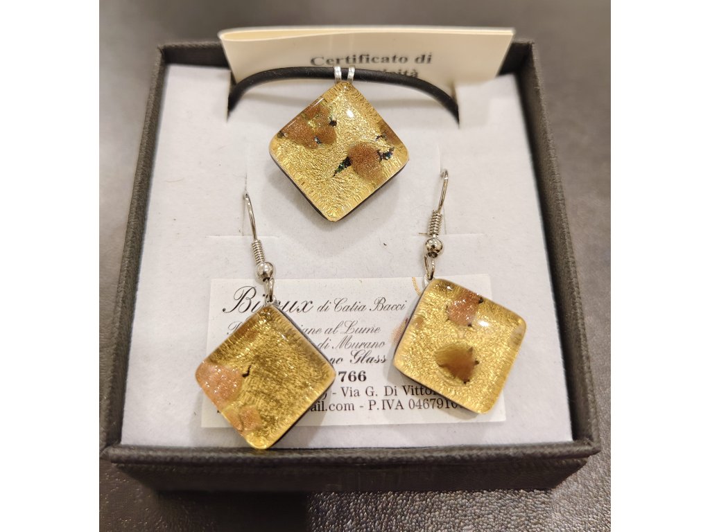 Sada šperků "Murano glass" Čtverce zlatohnědé 2