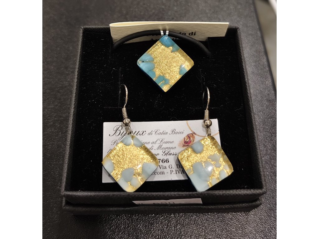 Sada šperků "Murano glass" Čtverce zlatomodré