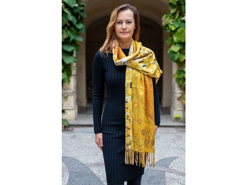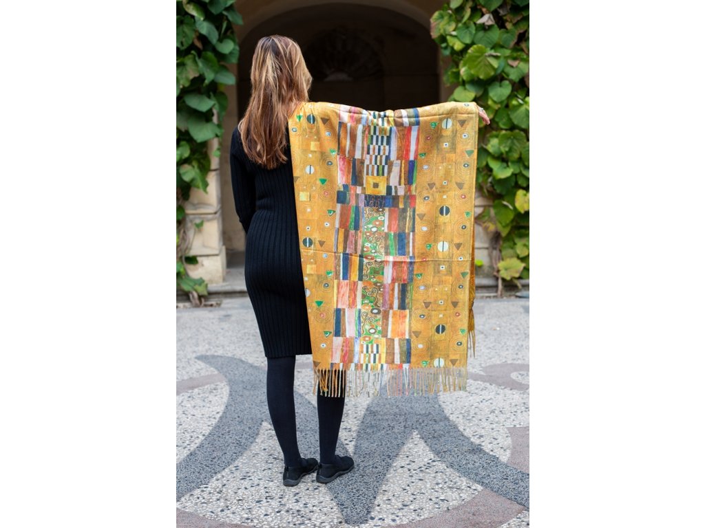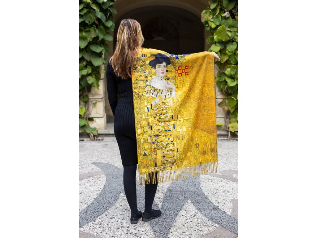 Oboustranná kašmírová šála s obrazem Gustav Klimt - Zlatá Adele, z druhé strany je obraz Gustav Klimt - Callage.
