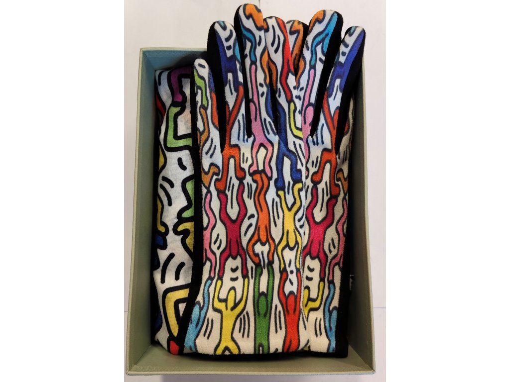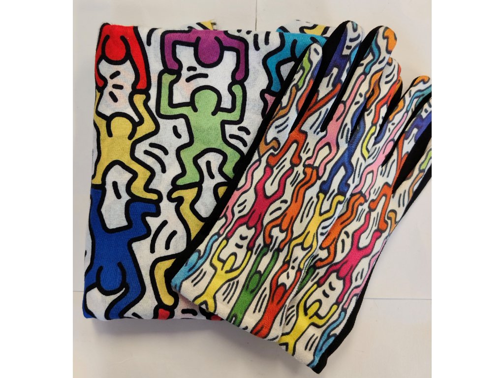 Oboustranná kašmírová šála s obrazem Keitha Haringa - BURO. Z druhé strany je stejný motiv.