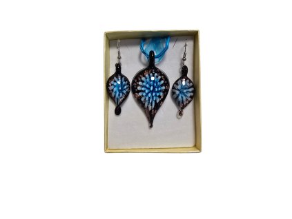 Sada skleněných šperků z Itálie ve stylu Murano.Sada zabalena ve zlaté dárkové krabičce.