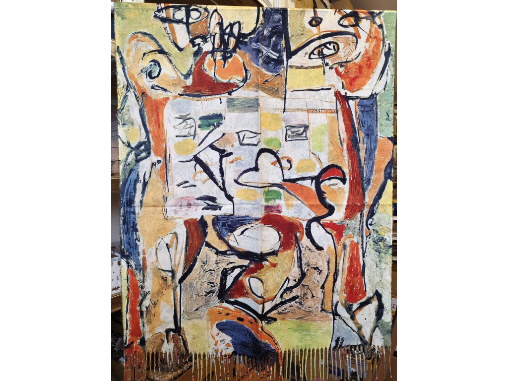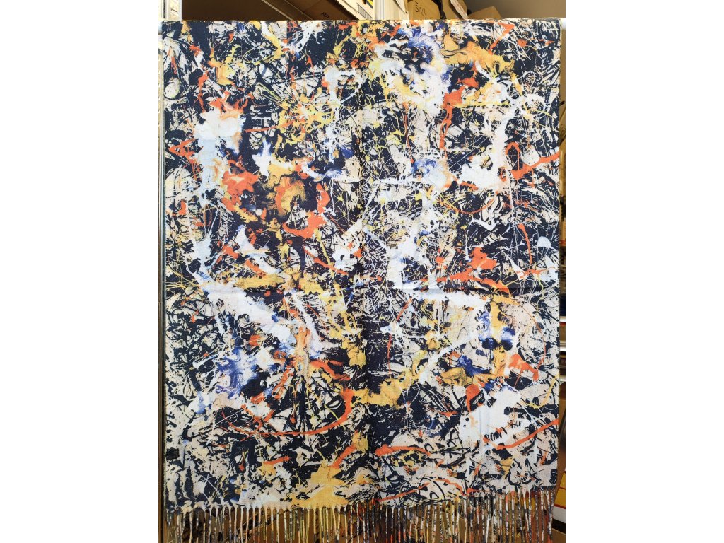 Oboustranná šála s obrazy od Jacksona Pollocka Convergence (Number 10) a The Tea Cup.