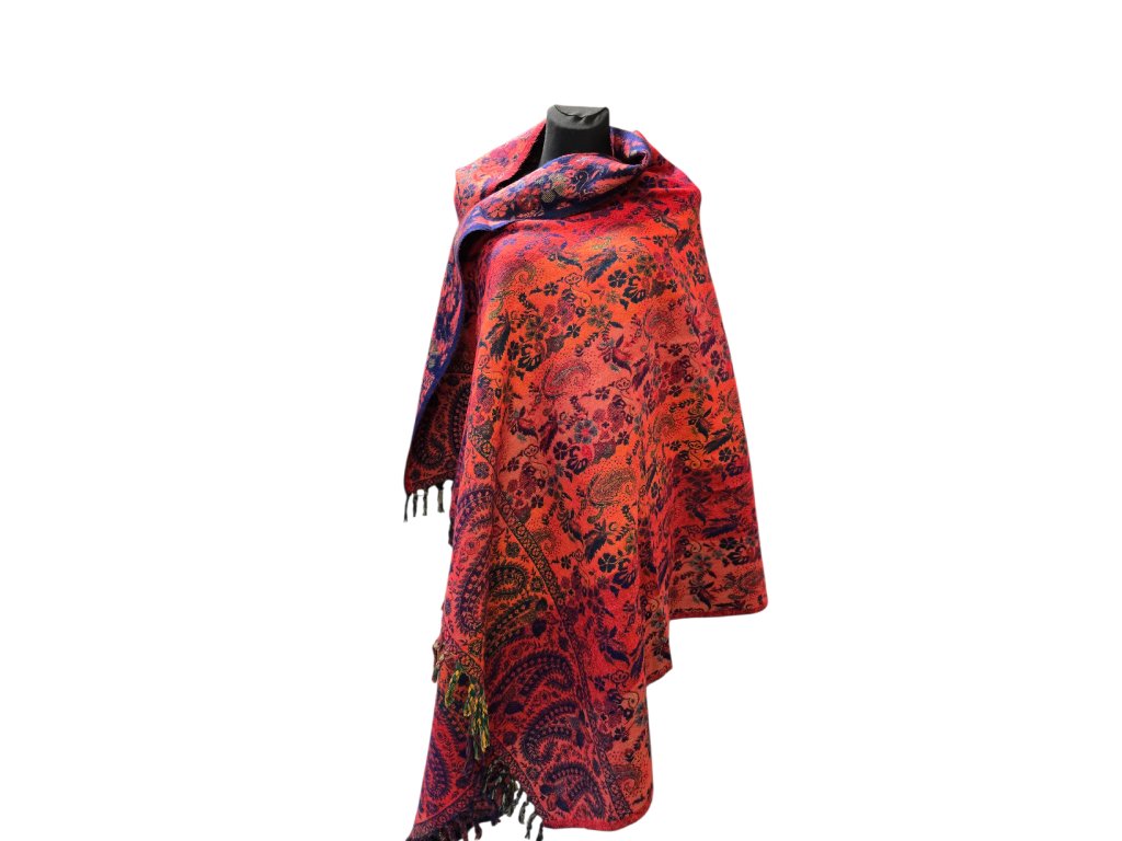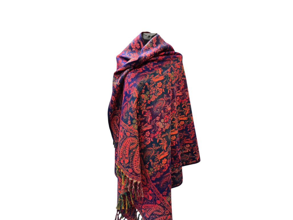 Velká, teplá a výrazně zdobená šála z pravé jačí vlny.