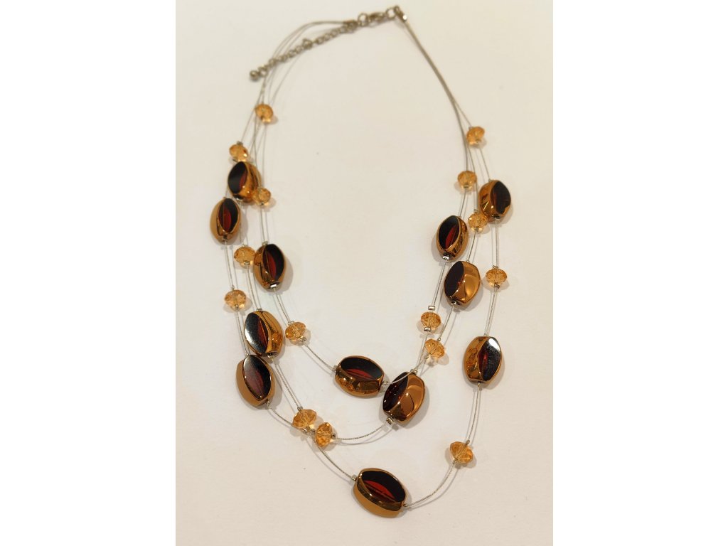 Nadčasový náhrdelník s krásnými skleněnými kameny typu "jablonecká bižuterie" složený ze tří ocelových lanek.