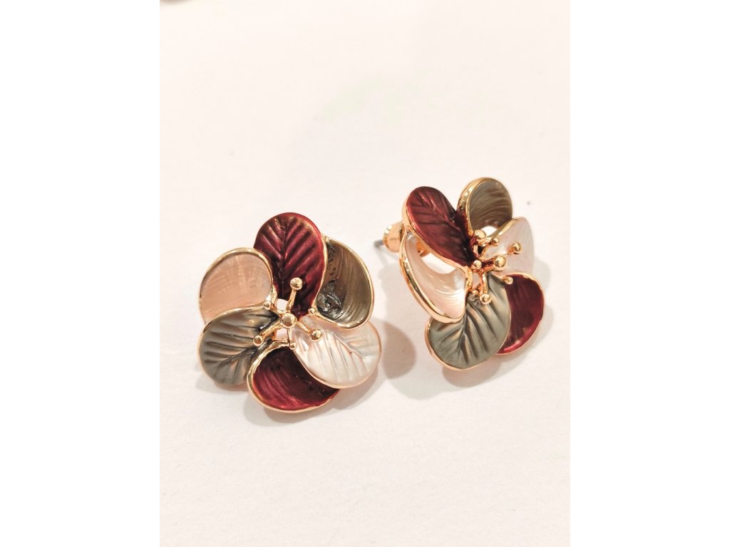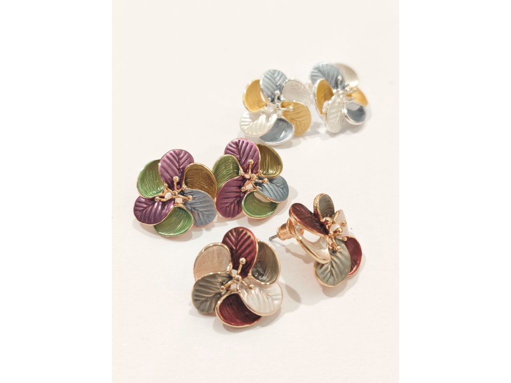 Nádherné náušnice ve tvaru velkých květů v několika barvách, vyrobené ze slitin zinku, které jsou pokovené do barvy červeného zlata a stříbra. Díky praktickému zapínání kovovým kolíčkem jsou pohodlné na nošení. Tyto elegantní náušnice se hodí pro každou příležitost a přinesou vašemu stylu šmrnc a originalitu.