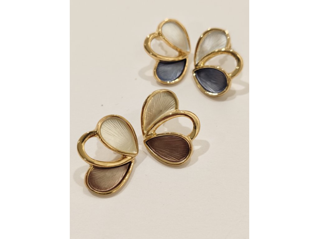 Nádherné náušnice ve tvaru tří spojených lístků v několika barvách, vyrobené ze slitin zinku, který je pokovený do barvy žlutého zlata. Díky praktickému zapínání kovovým kolíčkem jsou pohodlné na nošení. Tyto elegantní náušnice se hodí pro každou příležitost a přinesou vašemu stylu šmrnc a originalitu.