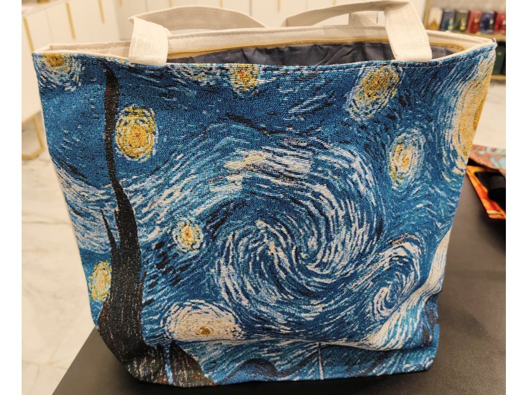 Plátěná plážová taška přes rameno s motivem obrazu Hvězdná noc od Vincenta van Gogha.