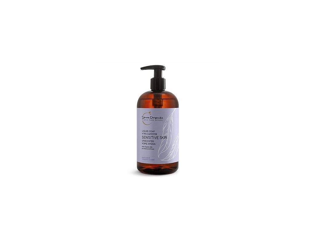 Tekuté mýdlo s organickými oleji pro citlivou pokožku - bez parfemace.