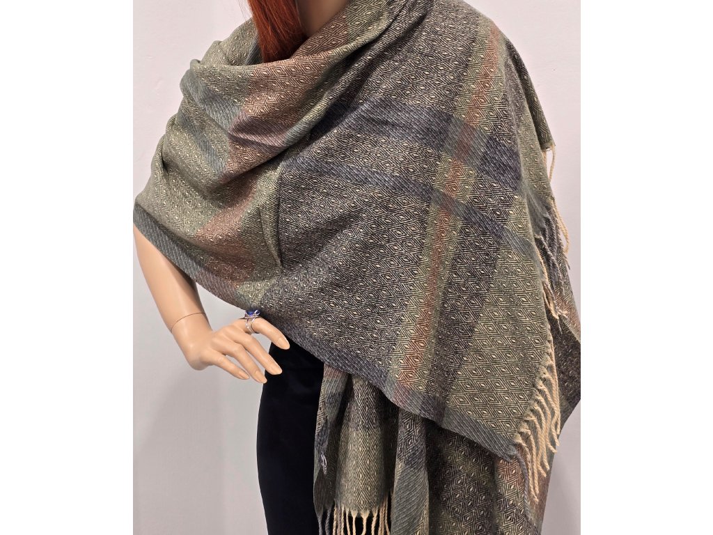 Teplá kašmírová šála s diamantovým vzorem - olivová