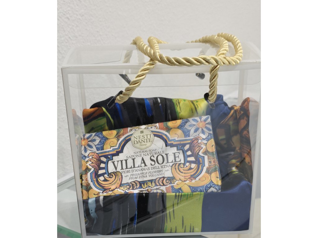Šátek z pravého hedvábí s luxusním mýdlem v dárkovém boxu.