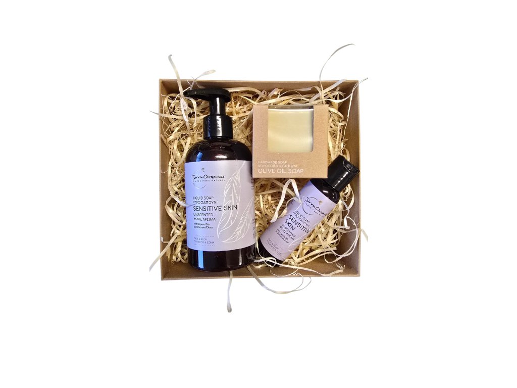 Sada v dárkové krabičce s mašlí obsahuje přírodní, řemeslná mýdla od řecké značky Sirra Organics: